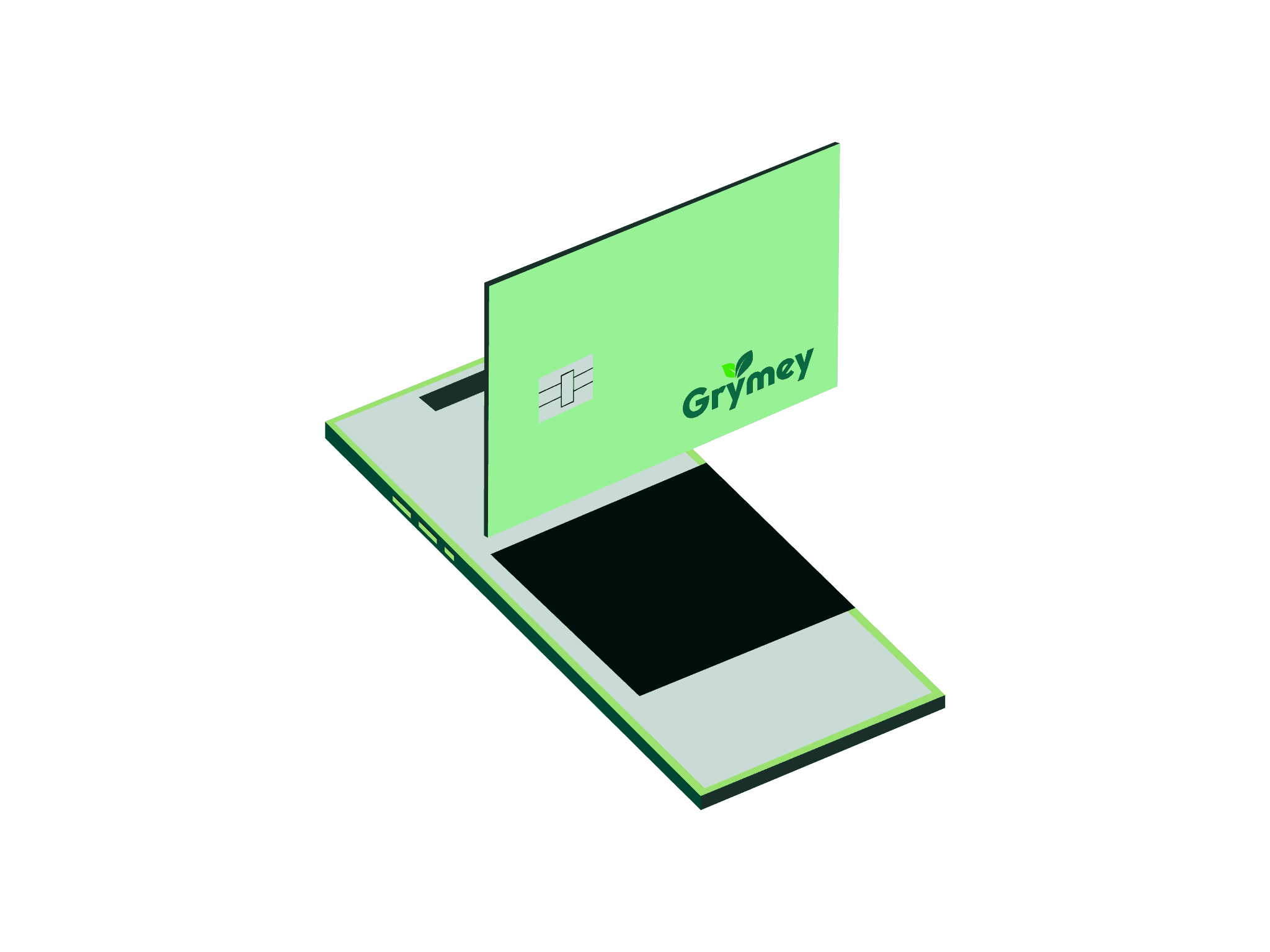 Grymey’s illustrations use an isometric style built around the brand’s core colors. The visuals highlight simplicity, security, and financial freedom.