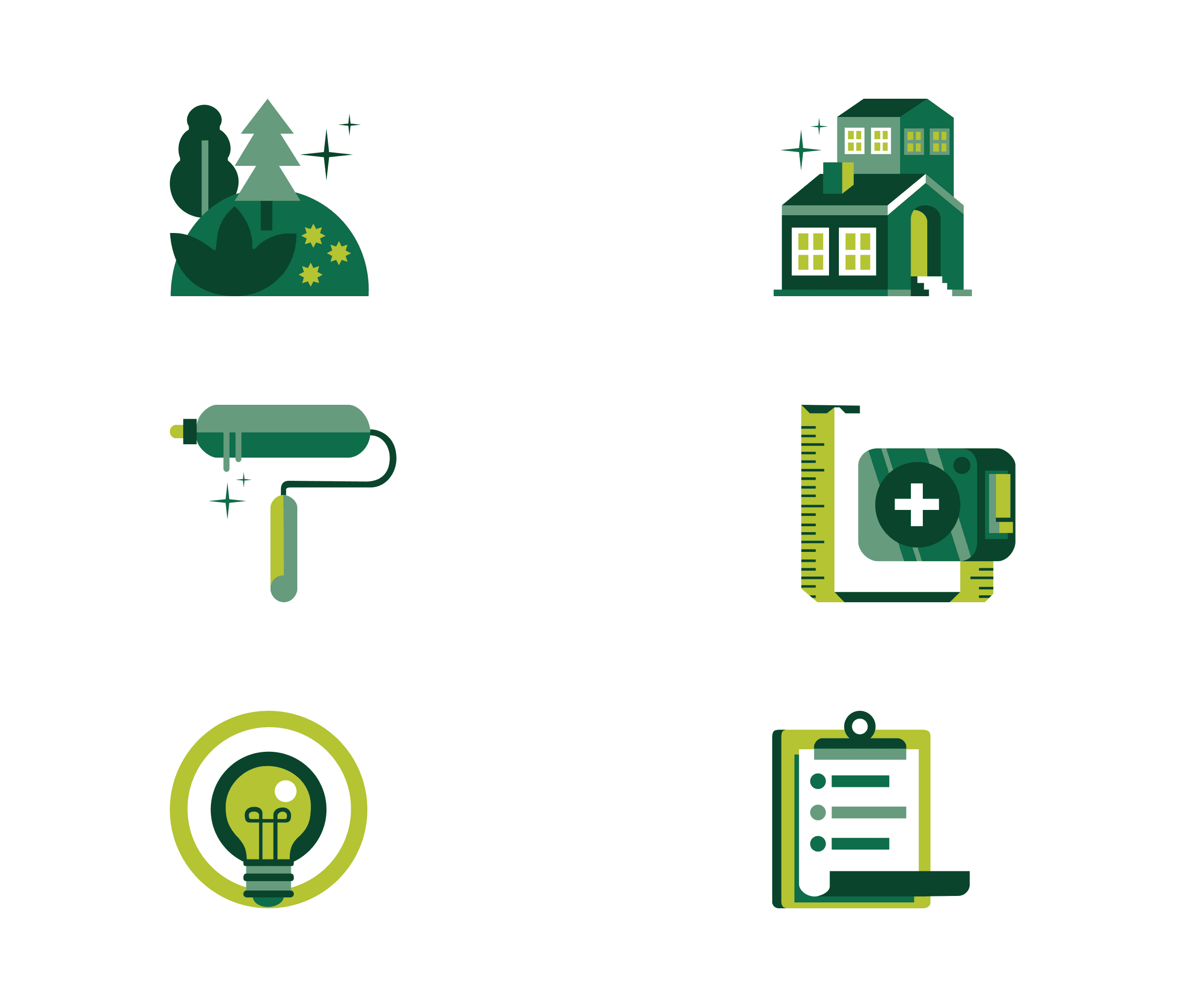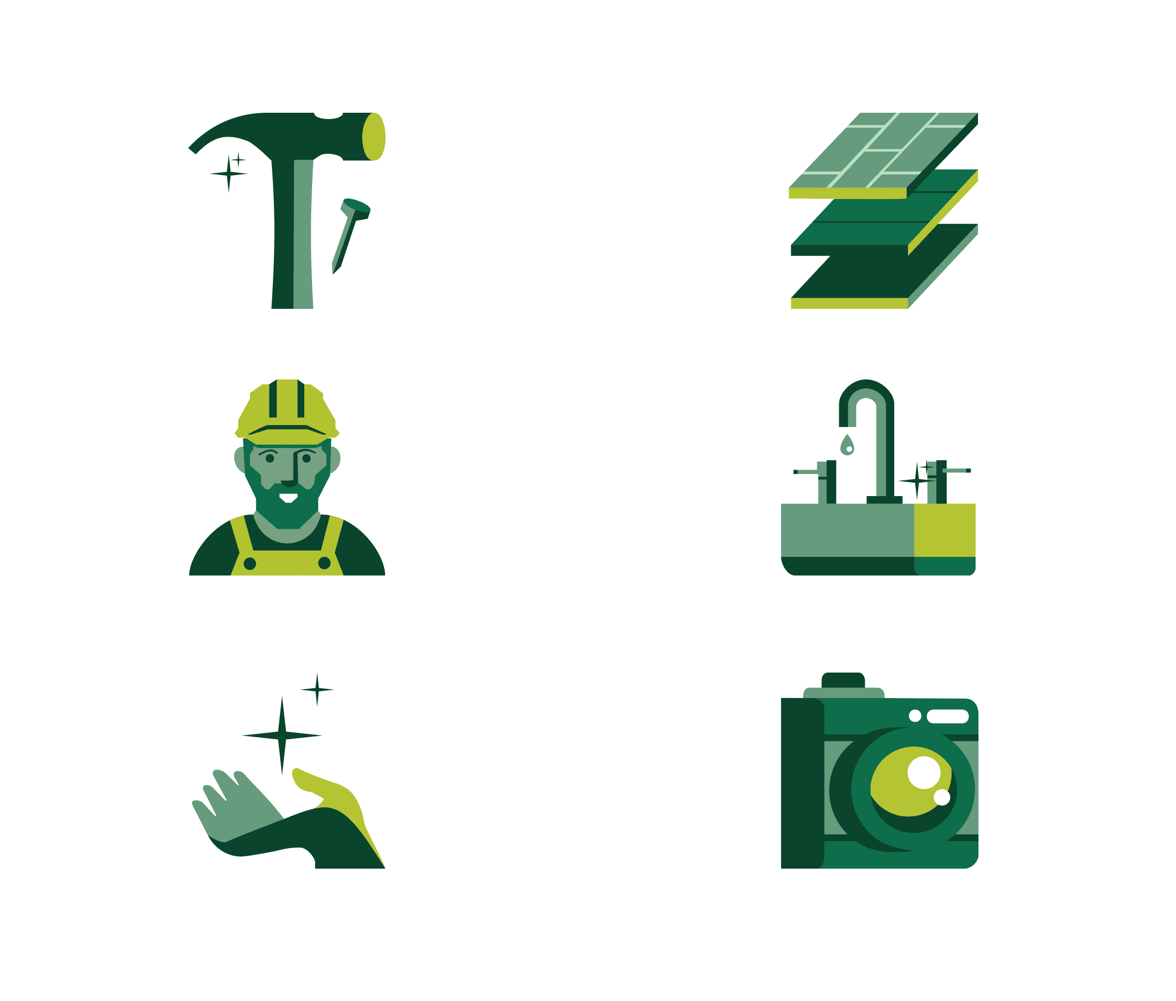 Handiwork’s illustrations use a clean, semi-realistic style with soft geometric forms and human-centered scenes. They highlight real people doing skilled work, collaboration between customers and handymen, and trust in every interaction. The visuals use brand colors to maintain warmth, clarity, and professionalism.